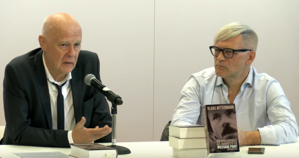 Klaus Bittermann im Gespräch mit Ulrich Gutmair auf der Buchmesse über Wolfgang Pohrt: https://youtu.be/C1SrSkw5Gn8?t=3879